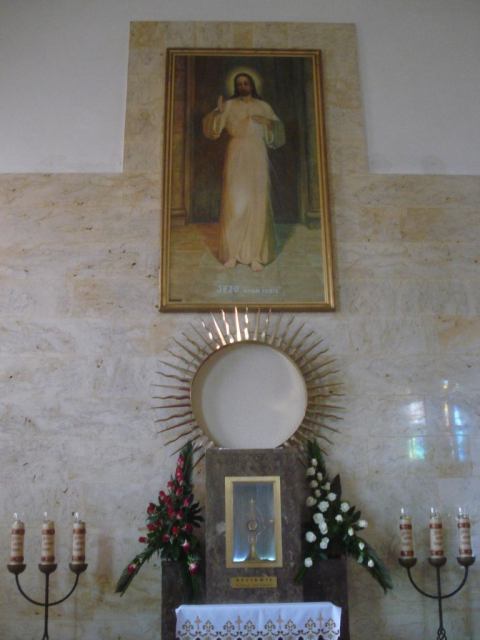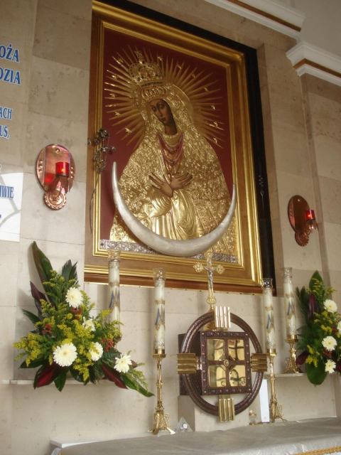 Skarżysko Kamienne - Moja żona nie była w Wilnie dlatego zwiedziliśmy wierną replikę Ostrej Bramy z Wilna wybudowaną właśnie w tym mieście. W kościele do którego przylega brama znajdują się w bocznej kaplicy Wiecznej adoracji relikwie Św. Jana Pawła II.