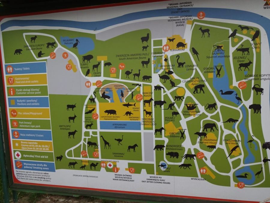 Wrocław ZOO - na kupione przez internet bilety weszliśmy do wrocławskiego zoo bez czekania w kolejce i rozpoczęło się oglądanie zwierząt. W cenie było zwiedzanie Afrykarium - to taki duży budynek w którym była flora i fauna afryki. Po zoo udaliśmy się do hotelu w nazwie Ptak gdzie się odświeżyliśmy i udaliśmy sie na Rynek Wrocławia. W planie był jeszcze Ostrów Tumski ale brakło czasu. Po noclegu w rannym śniadaniu skierowaliśmy się w stronę Zielonej Góry i Szczecina by dotrzeć do Międzyzdrojów.