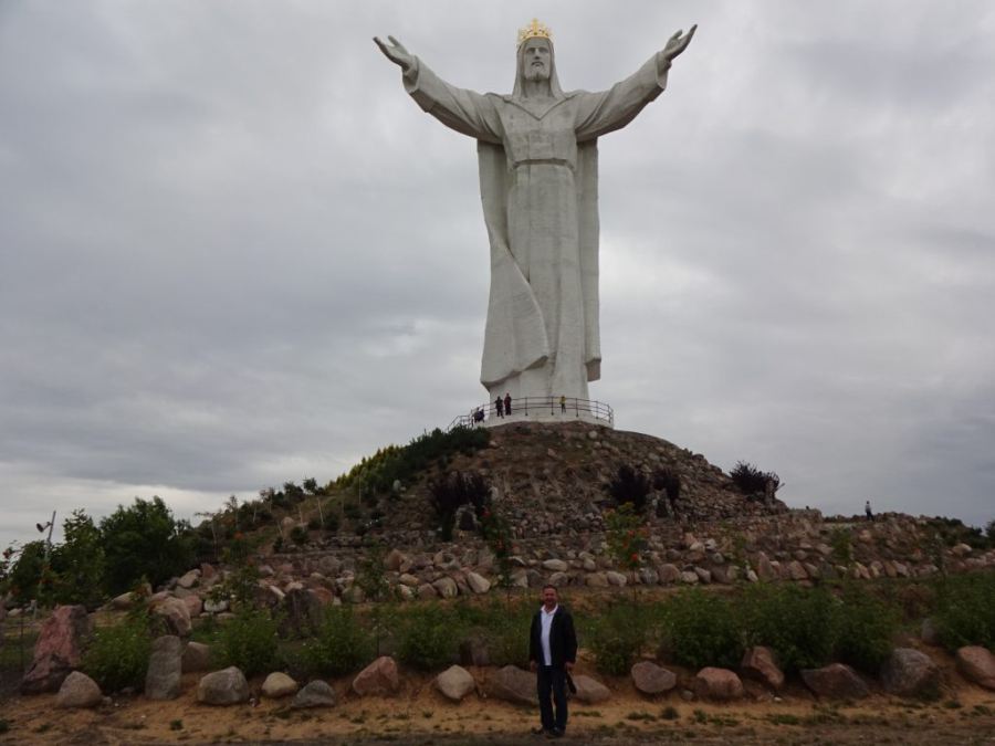Świebodzin - Chrystus, - jadąc drogą S-3 musieliśmy się zatrzymać pod figurą Chrystusa Króla w Świebodzinie. Imponująca figura i warto udać się pod nią by uświadomić sobie jaki człowiek jest mały.