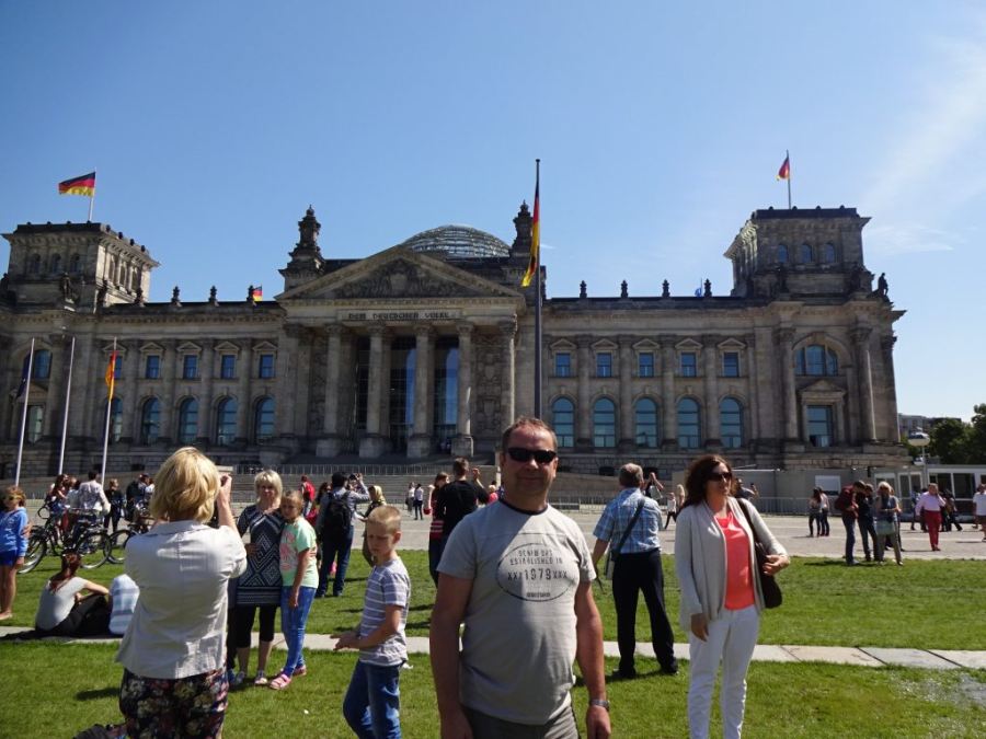Berlin - w sobotę pojechaliśmy z wycieczką do Berlina. Koszt to 280zł + 70zł transfer do Świnoujścia z Międzyzdrojów. Przewodnik Wojtek opowiadał o różnych rzeczach które mijaliśmy po drodze. W Berlinie pierwszy etap zwiedzania to było przepłynięcie statkiem po rzece Sprewa. Potem Reichstag, Brama Brandenburska oraz pozostałości muru berlińskiego. Na koniec udaliśmy się do Poczdamu. Oglądaliśmy park Sanssouci. Wróciliśmy do Międzyzdrojów i 22:00
