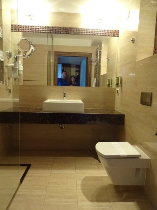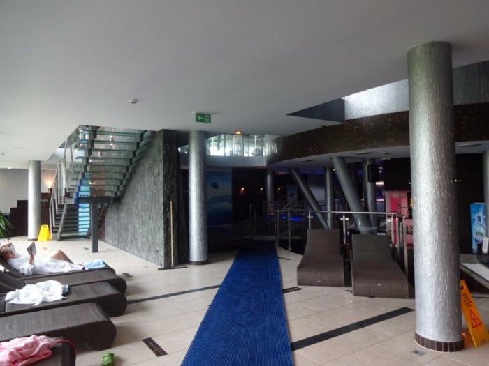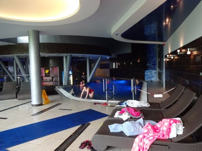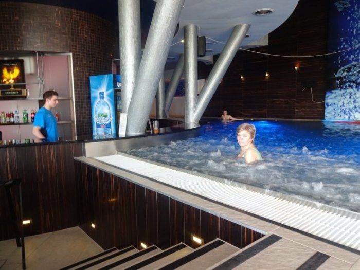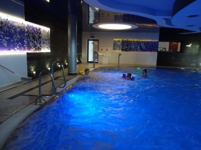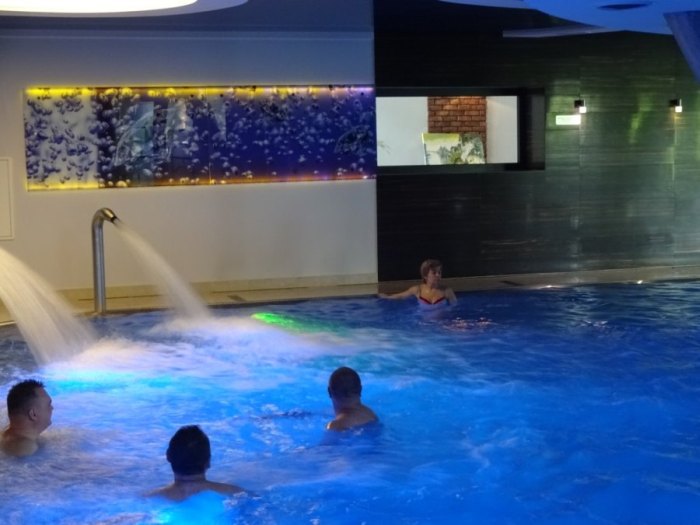 Byliśmy tu tylko dwa dni i trafiliśmy na kiepską pogodę, zwiedzać nie było co, to siedzieliśmy na basenie. Ponoć jest to basen jedyny w swoim rodzaju na podkarpaciu, bo będąc w wodzie można usiąść na wodnych taboretach przy barze i napić się drinka lub piwka. Woda w basenie ciepła, sauny fajne, brak tylko jaccuzi. Hotel super karmi, śniadania wypaśne i wszechstronne, nie wiem czy się powtarzają bo byliśmy ktrótko.