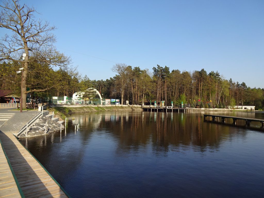 Trudno ocenić wodą bo się nie kąpaliśmy, była trochę zielonkawa. Zaplecze chyba by zadowoliło nie jednego. Plac zabaw dla dzieci, piaseczek na plaży, pomosty, łódeczki, rowerki wodne itd. Ładna duża ścianka spinaczkowa za 20 zł można było popróbować swoje siły. Od wieży była rozpięta lina i można przejechać się tyrolką. W lesie Park Linowy dla dzieci, starszych i zaawansowanych.