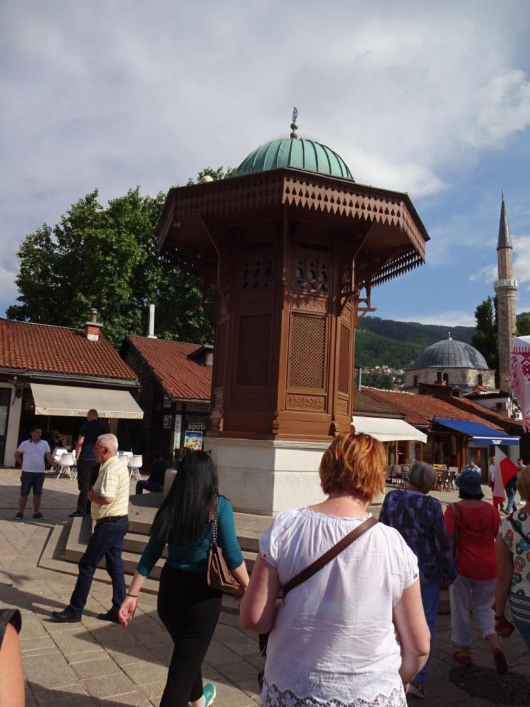 Sarajewo - rano po śniadaniu dalej w drogę do Sarajewa. Jak przekroczyliśmy granicę Węgiersko Bośniacką zobaczyliśmy wiele domów opuszczonych i zniszczonych. Były to domy ludzi którzy opuścili te tereny. Oczywiście jak przystało na kraj w połowie islamski meczety i minarety można było podziwiać co krok. Nie brakowało też kościołów i cerkwi. W Sarajewie zwiedzaliśmy cerkwie, byliśmy na dziedzińcu meczetu, o przespacerowaliśmy się po centrum odwiedzając stragany i sklepiki. Pokosztowaliśmy lodów i pieczywo zwane burek