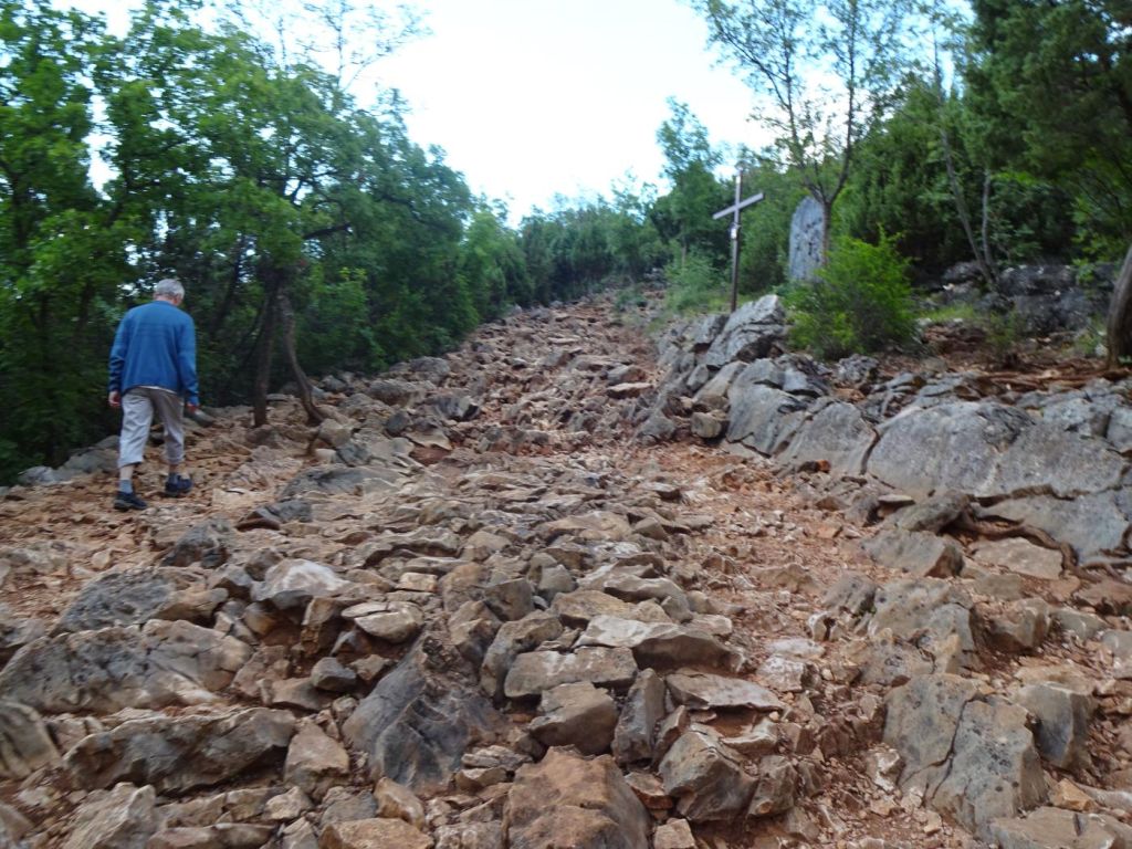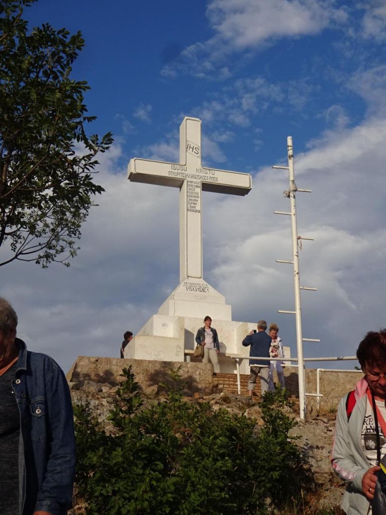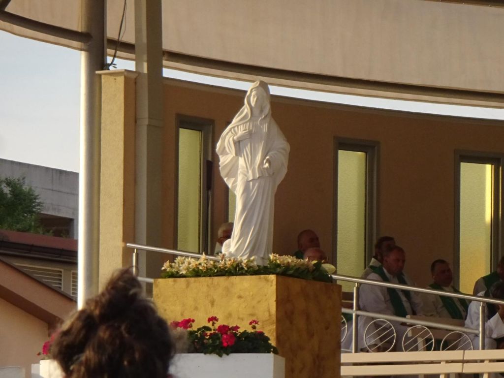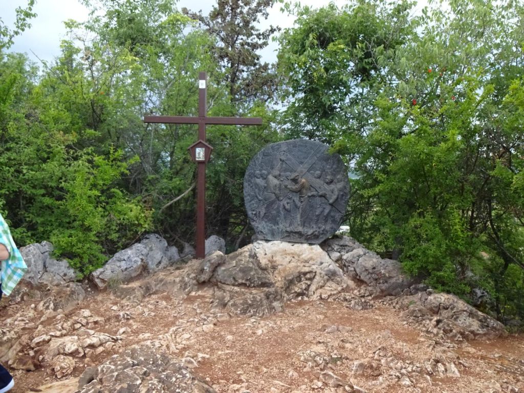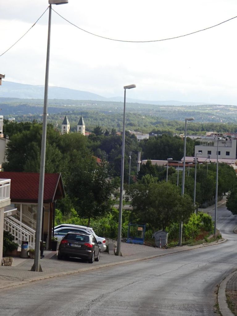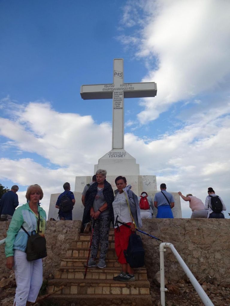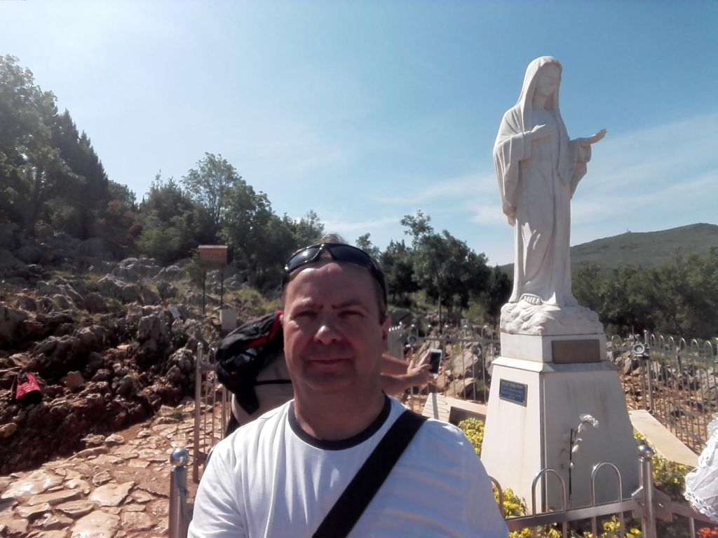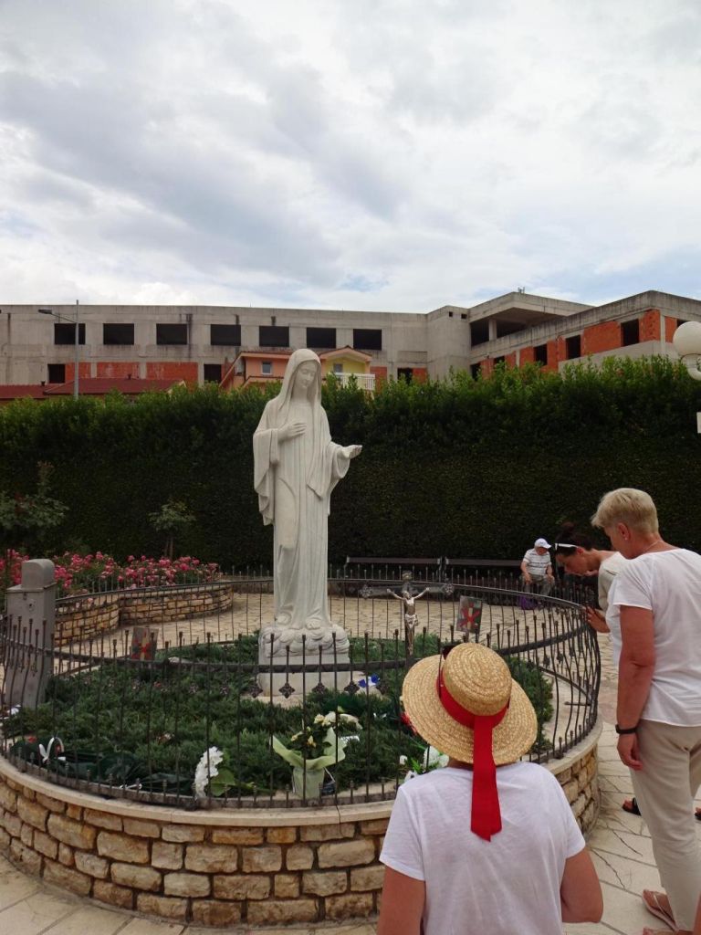 Medjugorie - dojechaliśmy to bardzo późno około 22:00. Zakwaterowaliśmy się w Domus Damar u pani Zdrawka. Był to bardziej pensjonat niż hotel, pokoje dwuosobowe z łazienkami, ładne, czyste lecz bardzo małe. Jedzenie dobre, choć śniadania trochę skąpe. W centrum miasteczka znajduje się kościół pw. św. Jakuba Apostoła. Za kościołem znajduje się ołtarz polowy zadaszony i plac z ławeczkami dla ludzi. Za kościołem jest jeszcze figura Jezusa Zmartwychwstałego, na ziemi leży krzyż a postać Jezusa z rozłożonymi rękami jest uniesiona ku górze. Z prawego uda bardzo wolno sączy się woda, która przez wiernych jest obcierana i zwilżają sobie oczy, czoło lub inne części które są chore. W kościele w bocznej nawie znajduje się figura Matki Bożej jak objawiła się na Górze Objawień cała w kwiatach - same storczyki.