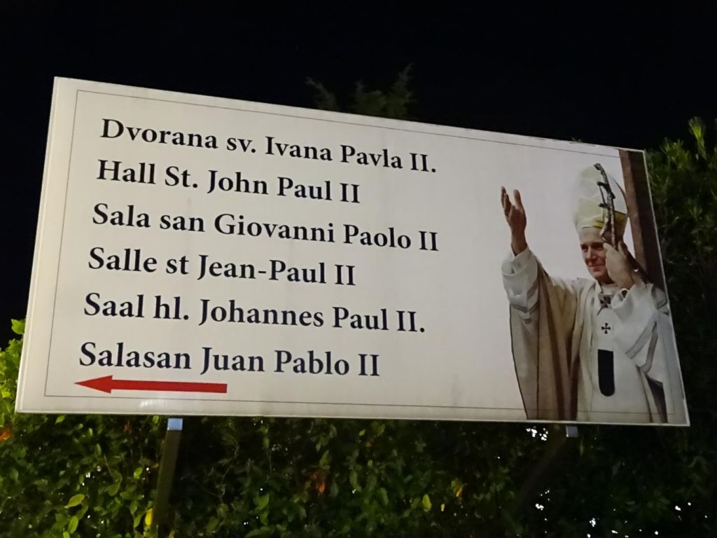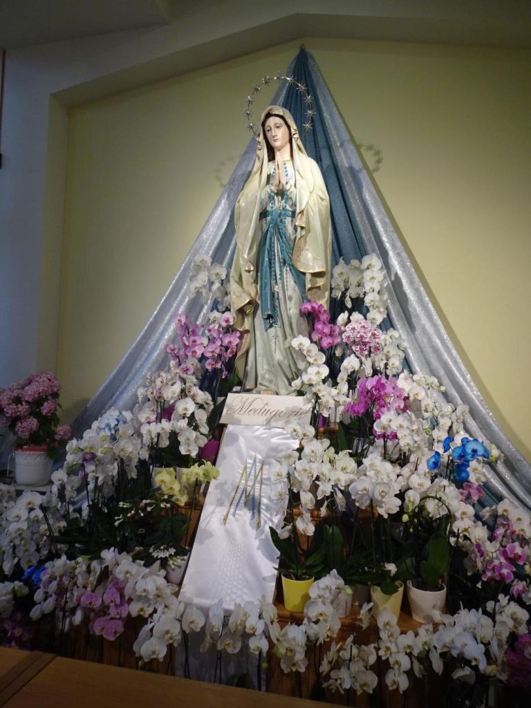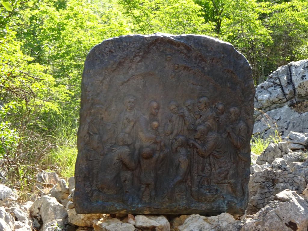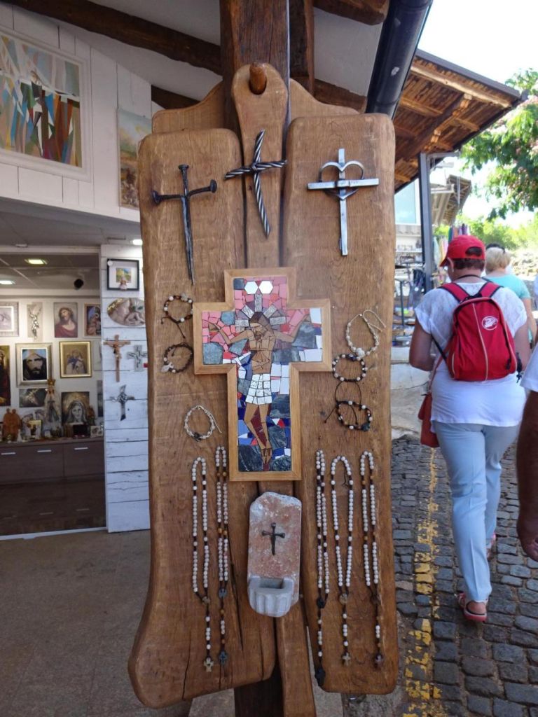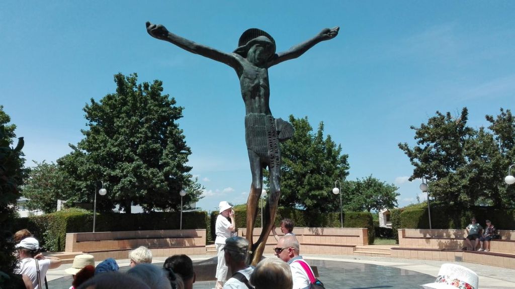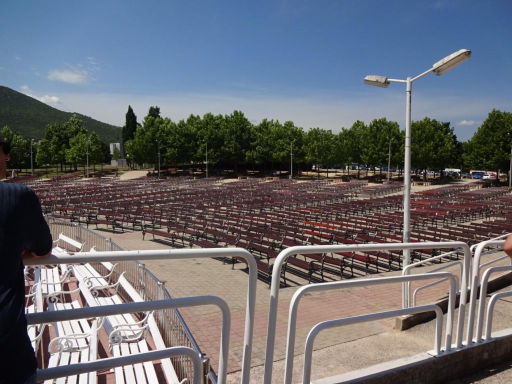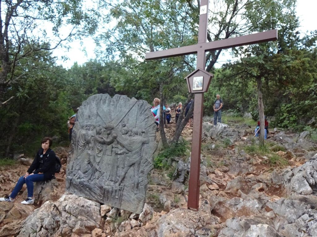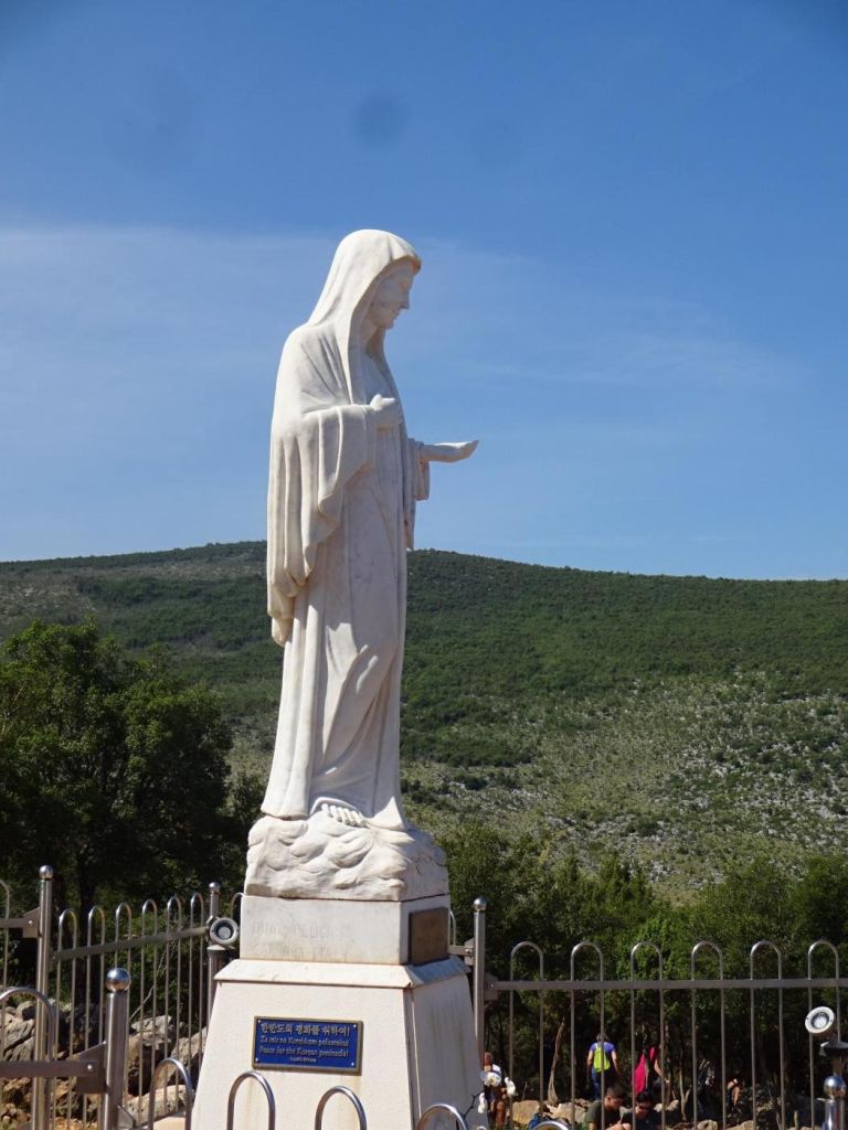 Medjugorie - dojechaliśmy to bardzo późno około 22:00. Zakwaterowaliśmy się w Domus Damar u pani Zdrawka. Był to bardziej pensjonat niż hotel, pokoje dwuosobowe z łazienkami, ładne, czyste lecz bardzo małe. Jedzenie dobre, choć śniadania trochę skąpe. W centrum miasteczka znajduje się kościół pw. św. Jakuba Apostoła. Za kościołem znajduje się ołtarz polowy zadaszony i plac z ławeczkami dla ludzi. Za kościołem jest jeszcze figura Jezusa Zmartwychwstałego, na ziemi leży krzyż a postać Jezusa z rozłożonymi rękami jest uniesiona ku górze. Z prawego uda bardzo wolno sączy się woda, która przez wiernych jest obcierana i zwilżają sobie oczy, czoło lub inne części które są chore. W kościele w bocznej nawie znajduje się figura Matki Bożej jak objawiła się na Górze Objawień cała w kwiatach - same storczyki.