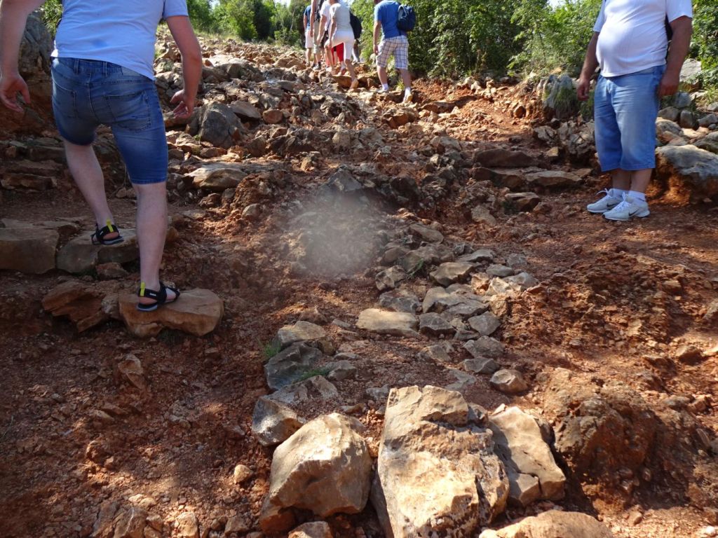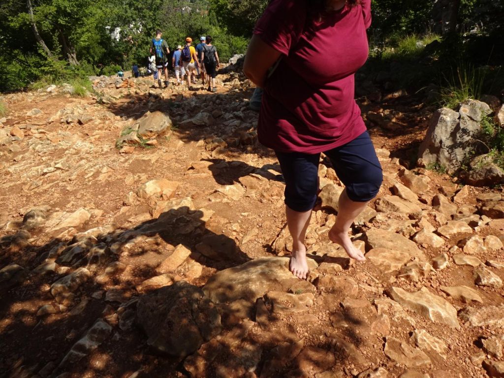 Góra Krzyża - na górę Krzyża wybraliśmy się o 5:00 rano by nie było upału. Trochę padało ale nie przeszkodziło to nam iść na górę. Po kamieniach, modląc się przy każdej stacji drogi krzyżowej, po godzinie byliśmy na górze.