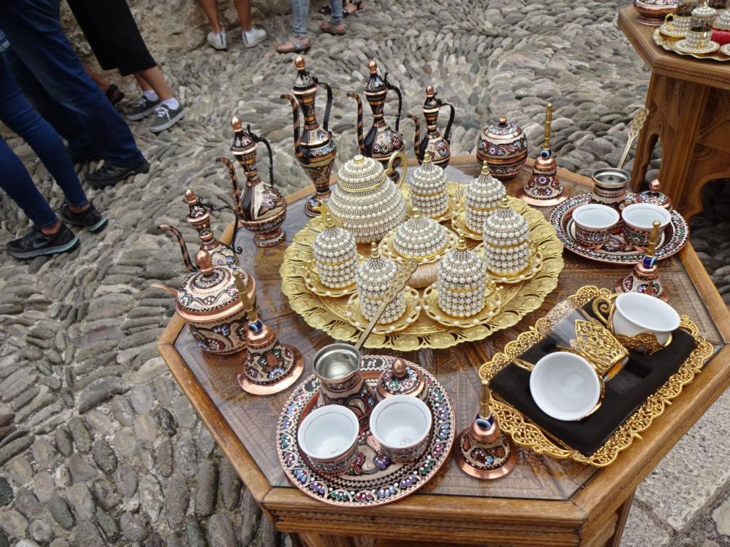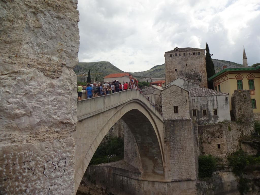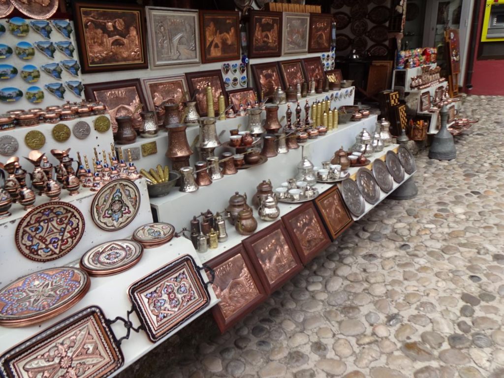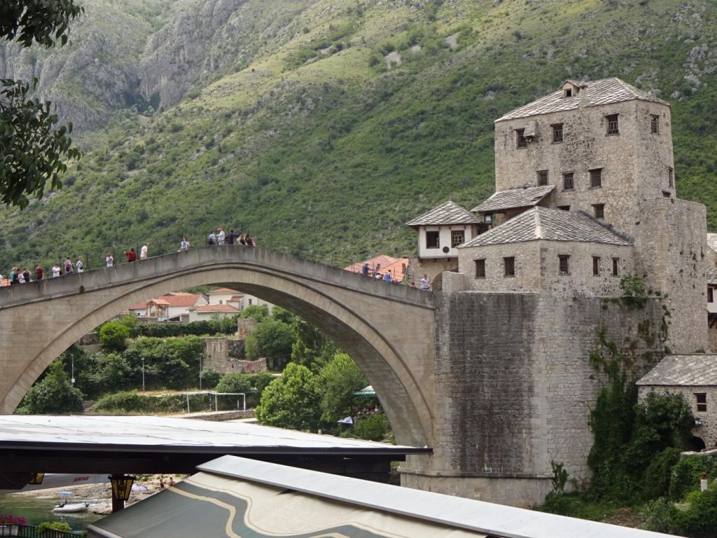 Mostar - przez który płynie rzeka Neretwa a brzegi są połączone Starym Mostem (Pojednania), został on zburzony pod konie 20 wieku a potem odbudowany przez Bośniaków i Chorwatów. Z tego mostu śmiałkowie skaczą do wody jak uzbierają od zwiedzających 20 EURO. Za mostem jest ulica jak bazar. Piliśmy tu kawę podawaną z bardzo słodkim ciastkiem, szklanką wody, a parzoną w specjalnym garnuszku.