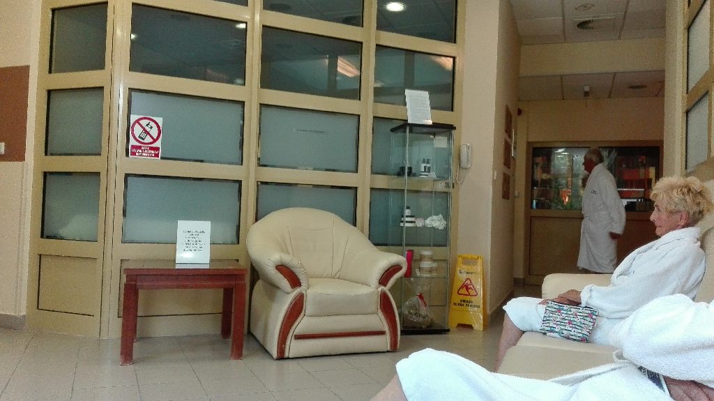 Po trzy zabiegi codziennie dla mnie i dla żony. Miałem kąpiel w wannie z bąbelkami w jakiejś tam wodzie, masaż klasyczny i prądy na moją bolącą nogę. Żona miała jakieś fango i coś tam i też masaż klasyczny.