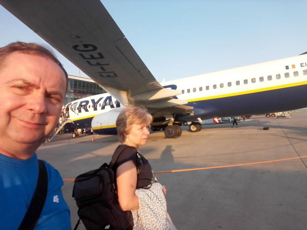 Dojazd - Wyjechaliśmy o 00:00 czyli w samą północ. O 3:00 byliśmy na parkingu "ALDA" gdzie zostawiliśmy samochód i na nogach spokojnie doszliśmy do terminala bo odległość to około 250 m. Boeing 737-800 taki samolot został podstawiony przez Ryanair i nim polecieliśmy na Rodos. Start przelot i lądowanie było bez żadnych problemów. Na lotnisku okazało się, że nasza jedna walizka nie ma kółek, została uszkodzona, zgłosiliśmy to w biurze podróżnych, był to błąd trzeba nam było zgłosić po powrocie do Polski.