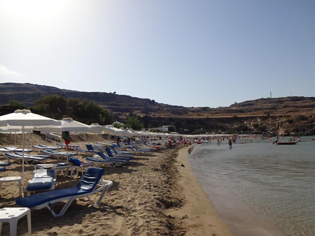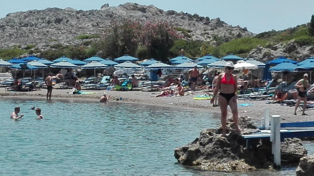 Plaże - na Rodos są z reguły piaszczyste, można wchodzić bez obuwia wodnego, woda bardzo czysta, można było oglądać rybki i dno morskie bez problemu. Za parasol z dwoma leżakami trzeba zapłacić 10 EURO za cały dzień. Były sporty wodne i różne atrakcje ale nie korzystaliśmy z tego. Odwiedziliśmy kilka plaż, oczywiście plaże w Faliraki, koło tej plaży za cyplem była plaża nudystów, tam tylko pooglądaliśmy starsze osoby które opalały swe nagie ciała, plaża Anthony Quinn bardzo ładna ale kamienista z ogromnymi głazami powulkanicznymi, plaża Ladiko podobna do plaży Quinn, plaża w Lindos obszerna, piaszczysta i ładna bardzo polecam.