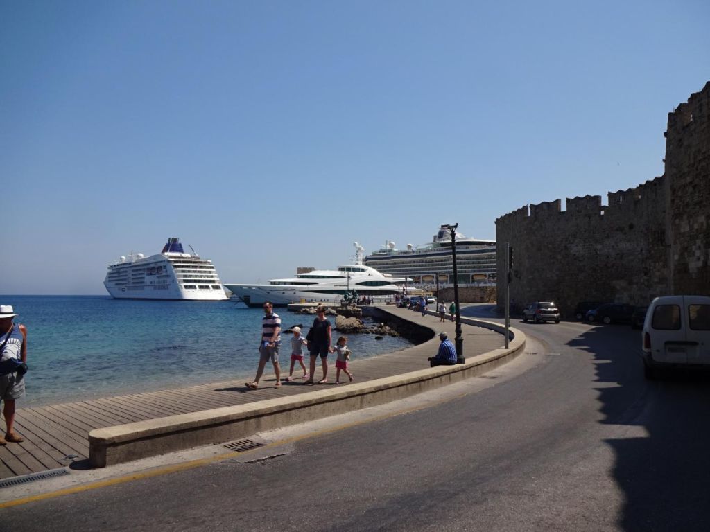 Rodos - do miasta Rodos wybraliśmy się w niedzielę, autobusem za 2,4 EURO. Stare miasto otoczone murami a w środku sklepik na sklepiku, meczet, fontanny i inne zabytki. W porcie stały duże pasażerskie statki. Oczywiście kolosa z Rodosu nie widzieliśmy bo jeszcze go nie odbudowano a ponoć grecy mają to zrobić. O 12:00 byliśmy w katolickim kościele (Grecja jest prawosławna) gdzie odprawiał mszę św. polski ksiądz zakonny z Krakowa. Było dużo ludzi, najwięcej polaków i włochów.