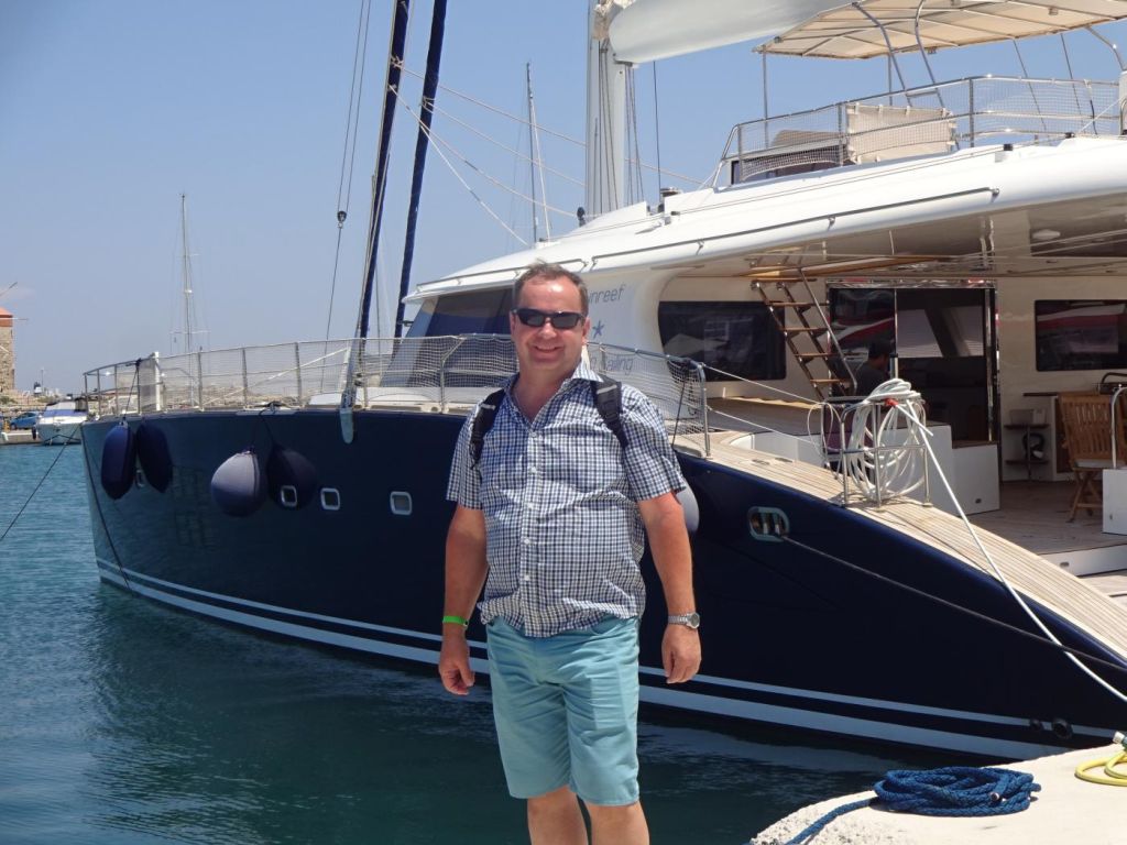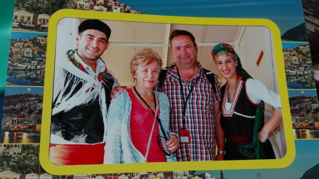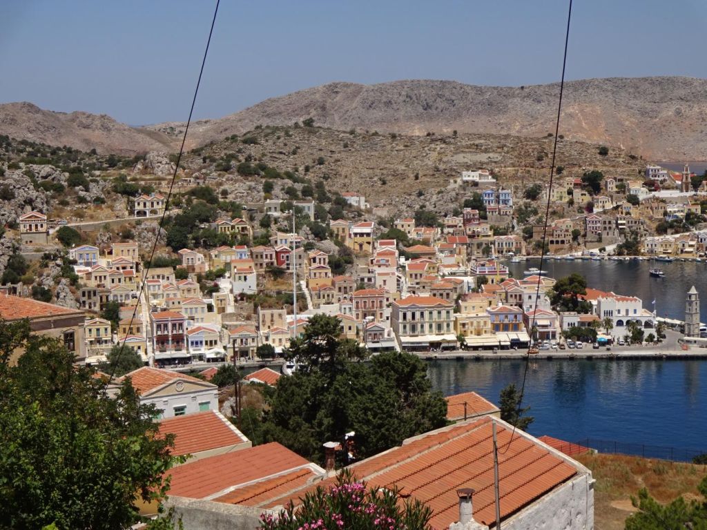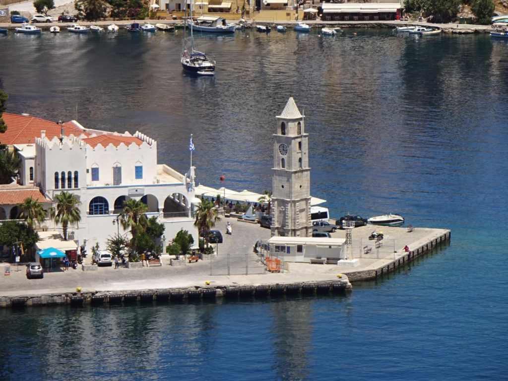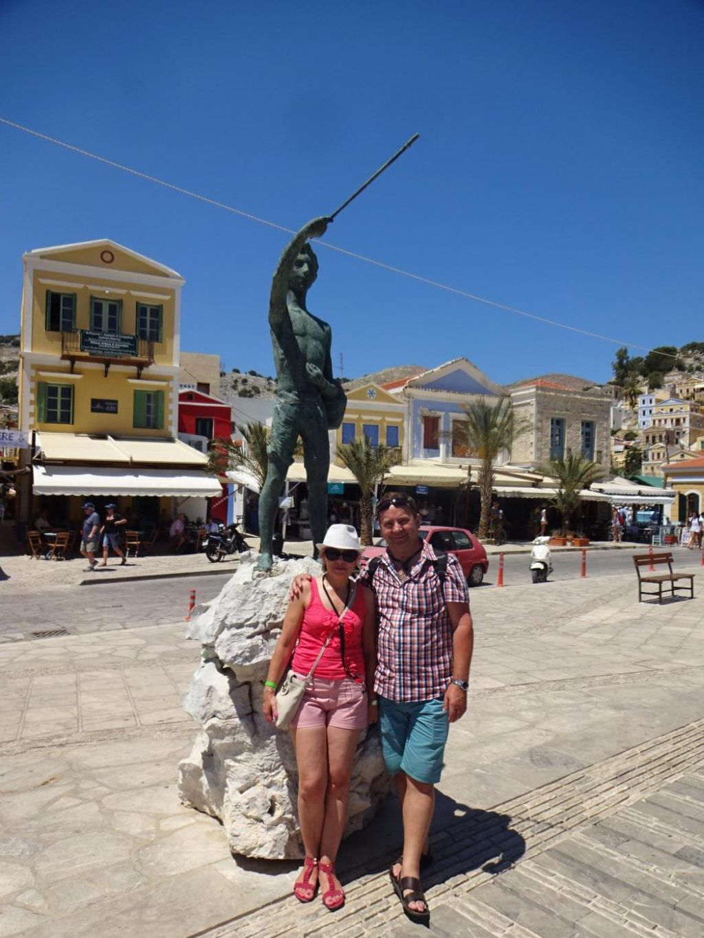 Symi - wyspa na którą płynęliśmy promem. Bardzo urokliwe miejsce, były tu nagrywane niektóre filmy. Wyspa która nie posiada żadnych źródeł wody słodkiej, woda jest dowożona, uzdatniana z wody morskiej lub pozyskiwana z opadów. Zjedliśmy tu obiad w restauracji popijając greckim piwem. W drodze powrotnej wpłynęliśmy do zatoki w której jest klasztor z cerkwią.