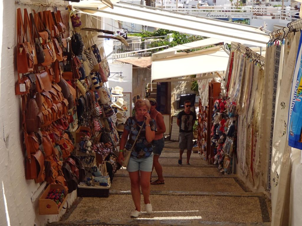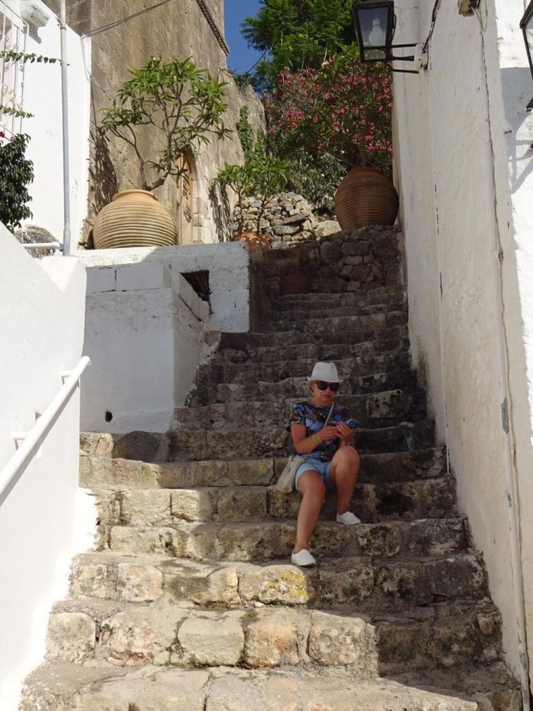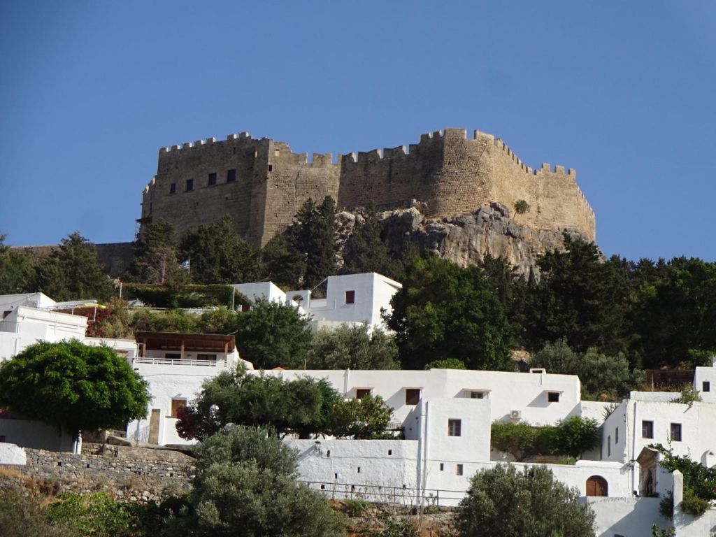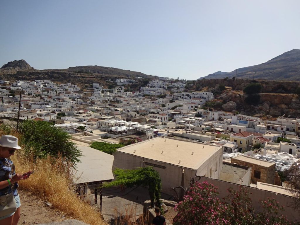 Lindos - pojechaliśmy autobusem za 4 EURO. Mała miejscowość obok góry na której jest akropol (ruiny). Lindos ma bardzo ładną plaże z piaseczkiem w takiej zatoczce. Na górę można wjechać na osiołku za 5 EURO, ale żal nam było tych zwierząt i szliśmy na nogach mijając wiele straganów i sklepików z wszystkim co możliwe, od souvenir do ubiorów. Samo wejście do środka akropolu kosztuje 12 EURO od osoby.
