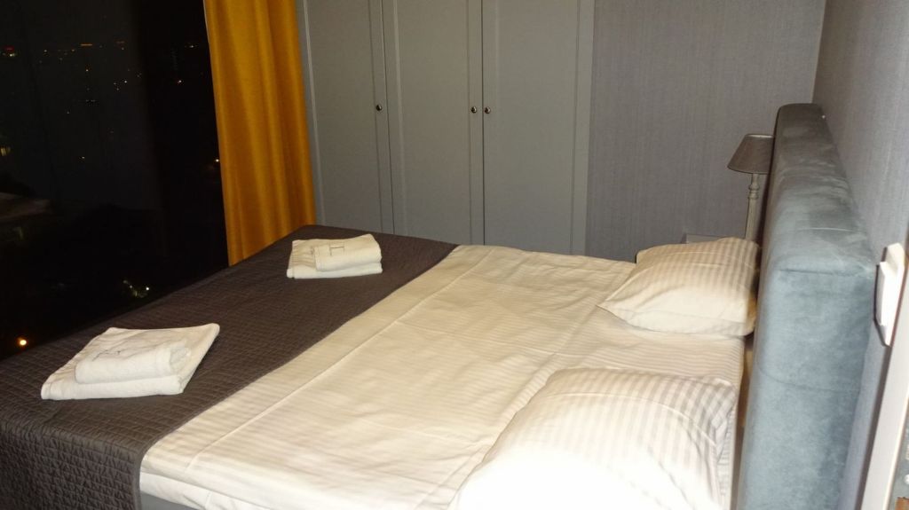 Wyjechaliśmy o 12:00, przez Lublin, czas przejazdu około 6 godz. bo przed Warszawą wielka budowa drogi. Zakwaterowaliśmy się na 11 piętrze w Triton Park Apartments.