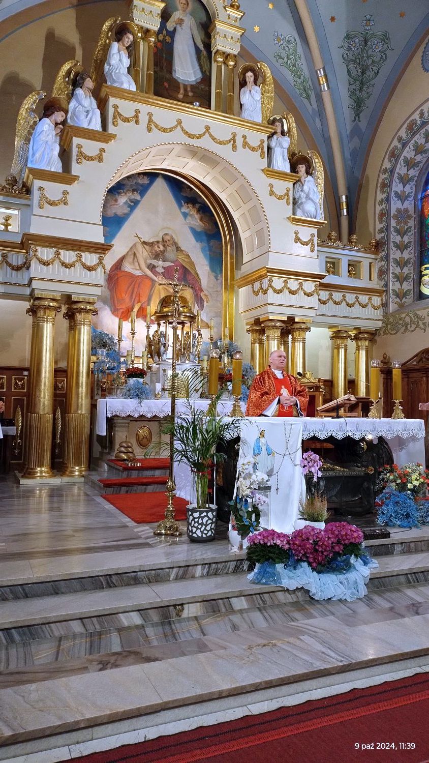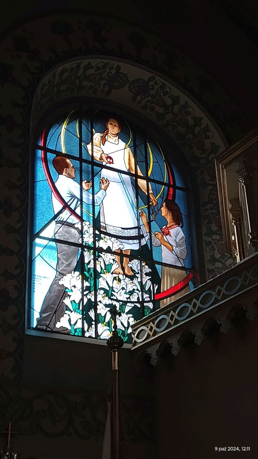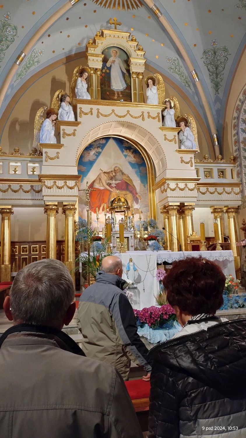 Sanktuarium Bł. Karoliny Kózkówny, jesteśmy tu drugi raz, Kościół pw. Trójcy Przenajświętszej w Zabawie, wysłuchaliśmy bardzo ładnej opowieści o Karolince opowiedzianej przez tutejszego przewodnika. Mieliśmy tu Mszę św.
